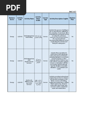 Dmcc Approved List Of Activities Xlsx Oil Well Jewellery