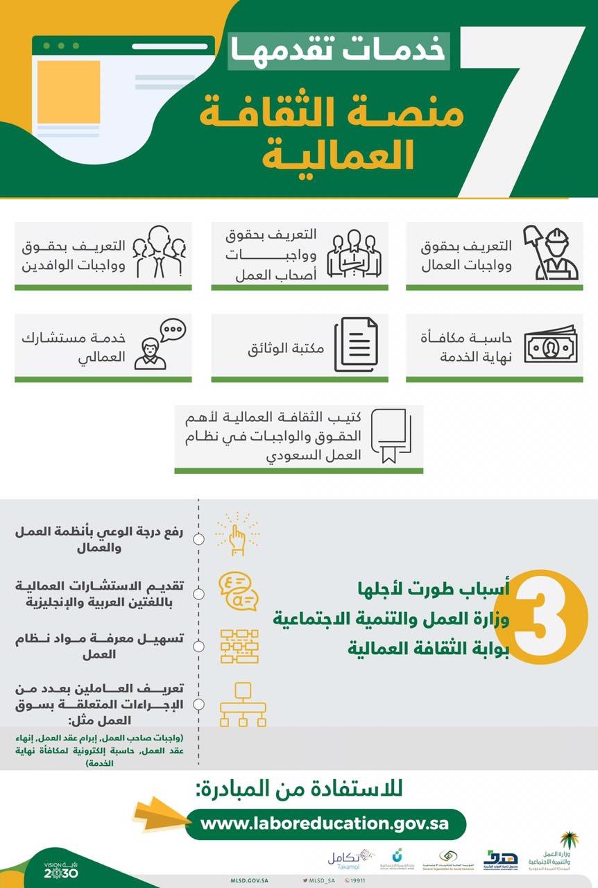 وزارة الموارد البشرية والتنمية الاجتماعية Pa Twitter مبادرة اعمل بوعي تقدم 7 خدمات متنوعة للموظف وصاحب العمل عبر منصة الثقافة العمالية تحفيز القطاع الخاص للتوطين Https T Co Xzcfi7ckcq